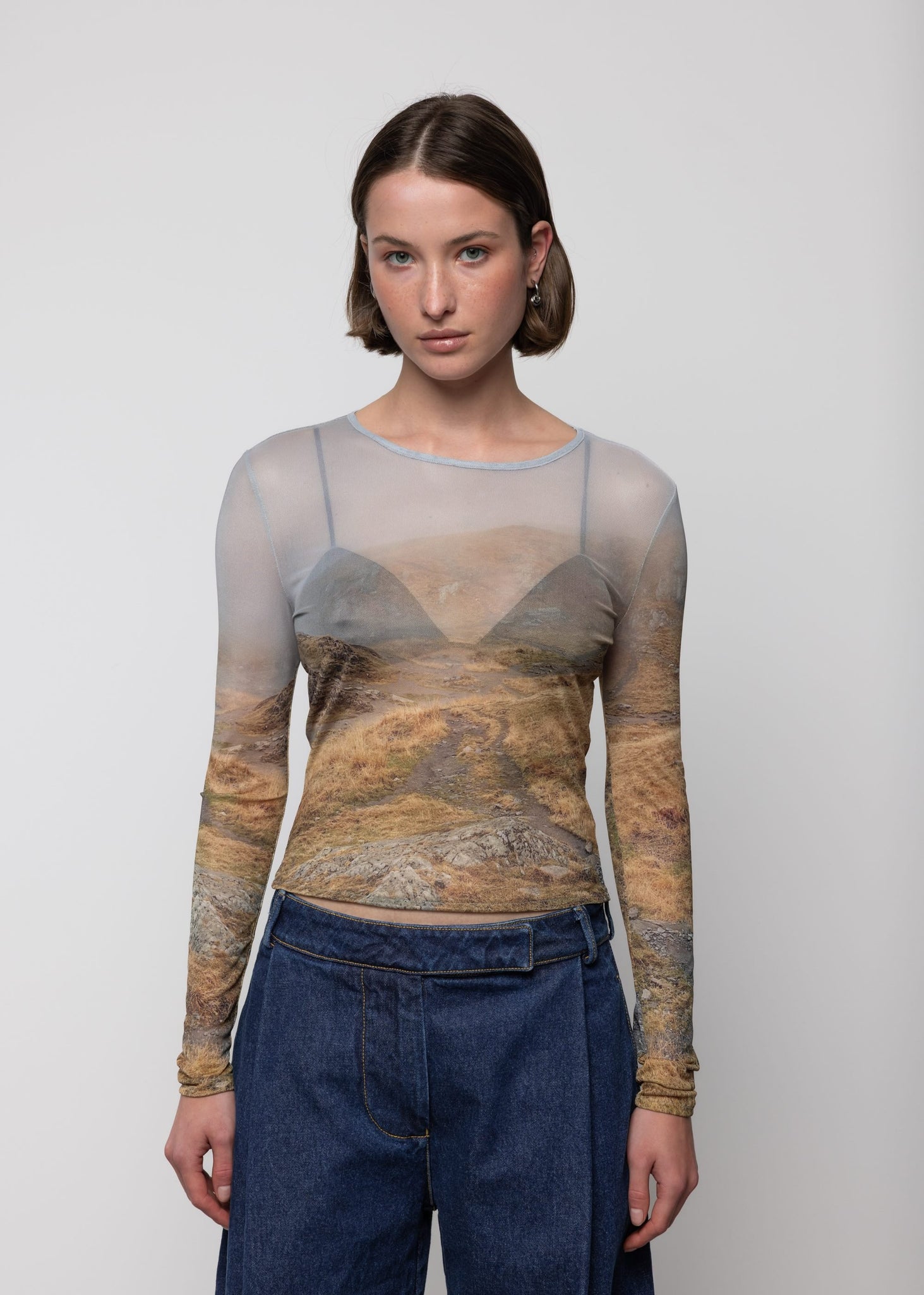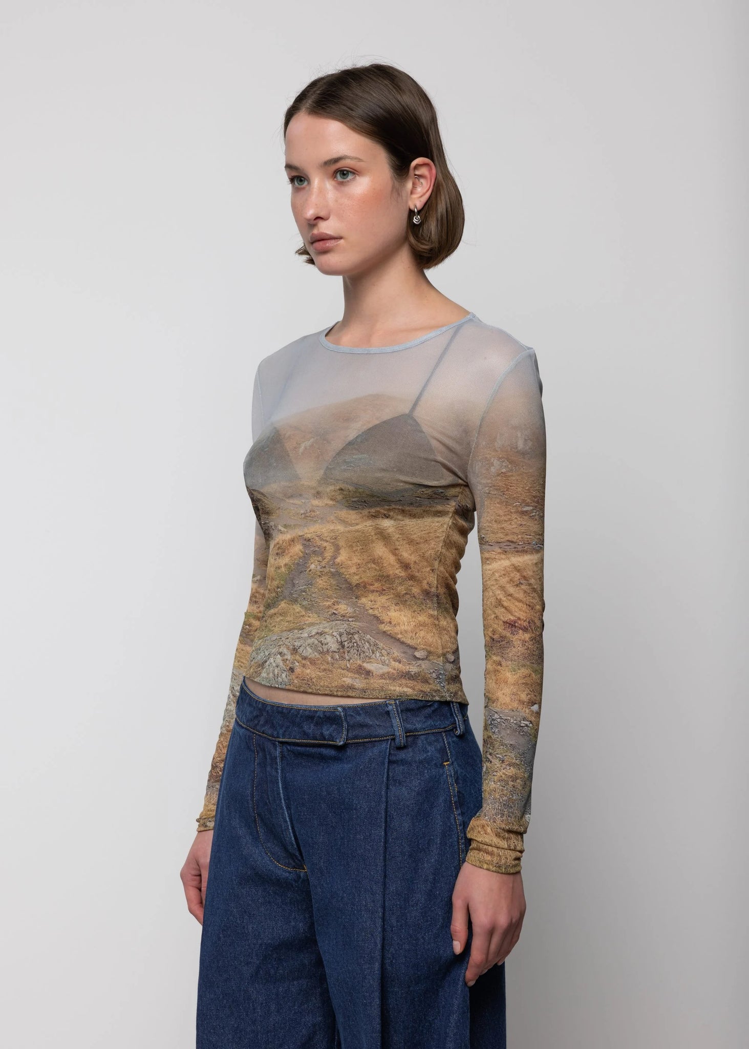 MESH LONG SLEEVE TOP IN NEGOIU PRINT